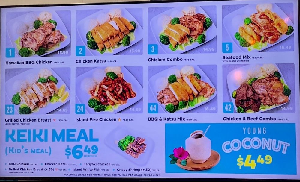 For those seeking something spicy, the Island Fire Chicken tantalizes with its unique blend of spices and zesty sauce. And let’s not forget the Ono Keiki Meals, perfect for little ones, offering a variety of choices, all at an affordable price.